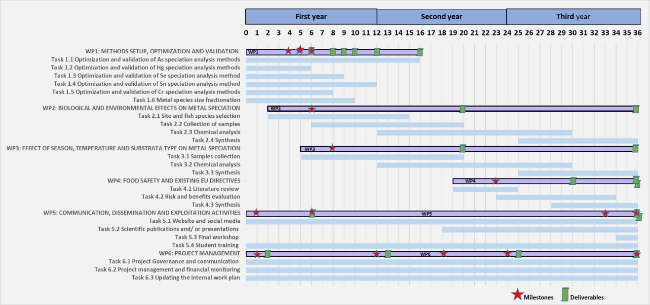 | D2.2 | Pre-draft of the biological and environmental effects on metal species presence in the edible tissues of fish | WP2 | Month 36 |